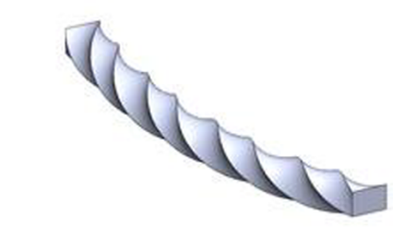 Ejemplo de Seguir trayecto y Torsión mínima (dos curvas guía seleccionadas) |