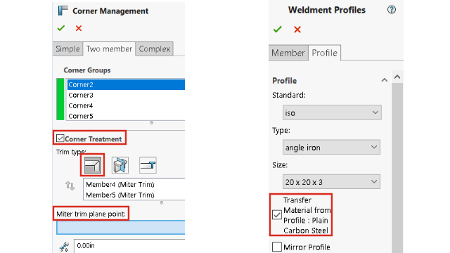 Karmaşık Köşe PropertyManager'ındaki iyileştirmeler, Köşe Yönetimi işlevini kullanmak için net bir iş akışı sağlar.