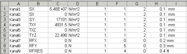 Kanal tablosu örneği: Excel dosyası (*.csv)