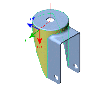 Bu seçeneği sadece seçili tüm yüzler silindirik olduğunda kullanabilirsiniz. Her yüz farklı bir eksene sahip olabilir. Her yüz için radyal, çevresel ve eksenel yönler kendi eksenine dayalıdır.
