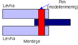 Üç levhayı bağlayan menteşe işlevi görecek bir pim bağlantı elemanı tanımlayın. |