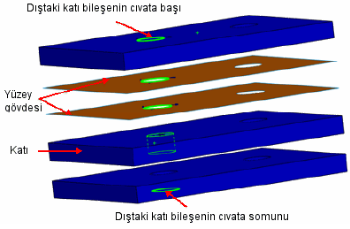 Sonuçlar hatalı olabileceğinden simetrik bir cıvatanın simetri düzlemine dik olan tepki kuvvetlerini isterken dikkat edin. Simetrik cıvataya sahip bir modelden gelen tepki kuvvetleri, simülasyonu tam kesitli cıvataya sahip bir modelde çalıştırdığınızda iptal edilebilir.
