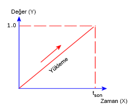 Yük çarpanı (Y değeri), 0 zaman noktasında 0'dan tbitiş zaman noktasında 1'e yükselir. Burada tbitiş, doğrusal olmayan analizin bitiş zamanı ya da geçici termal analizin toplam süresidir.