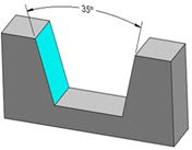 切欠(Notch) 2つの平行な平面と垂直な面で囲まれた領域、または2つの平行な平面がそれに正接する円筒面で囲まれた領域、ブラインドされた終端のタイプは平面 いいえ(No)