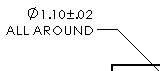 유도된 지시선은 피처의 곡면의 어느 각도에서나 시작할 수 있고 피처의 축에 평행한 주석 평면에 배치할 수 있습니다.