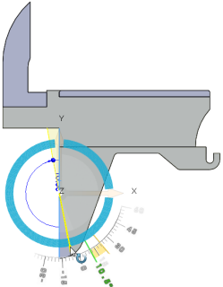 Criar recursos Mover face girados Abra um modelo e selecione a face a girar. Selecione Mover face (guia do CommandManager Edição direta). Clique em Frontal (barra de ferramentas Vistas padrão). Arraste o anel azul da tríade para girar a face. No PropertyManager, Girar é selecionada em Mover face. Um transferidor aparece para ajudá-lo a girar a face em um ângulo discreto. É exibida uma visualização do corpo girado. Clique em . Vídeo: Criar recursos Mover face girados Tópico paiPropertyManager de Mover face Criar recursos Mover face transladados Utilização de Selecionar faces conectadas