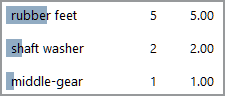 Essas barras só estão disponíveis para propriedades numéricas. Quando as barras de valores estão ativas, o componente com o valor mais alto tem a barra mais longa. O comprimento das barras pode ser calculado em relação ao componente de maior valor ou a toda a montagem.