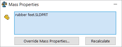 Ativa Substituir massa ou Substituir centro de massa e atribui os valores inseridos manualmente às propriedades de massa. |