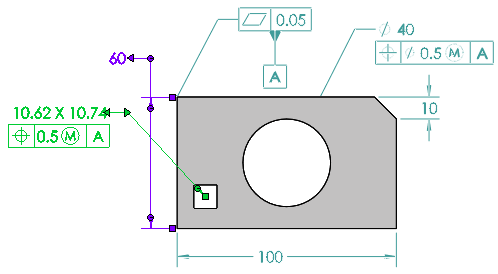 Puede utilizar la herramienta Comparación de PMI en 3D para comparar anotaciones DimXpert, cotas de referencia y otras anotaciones entre dos documentos de pieza.