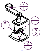 Se asocia a la pieza un globo que contiene un número de elemento. Si se especificó que el texto debería ser Nº de elemento, el número en el globo corresponde al número de elemento de la lista de materiales.