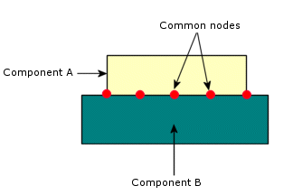 Ilustración de nodos de malla comunes en los límites de los componentes. Los dos componentes se mallan como un sólido.
