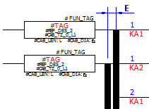 Un símbolo básico personalizable (etiqueta de manguera) que representa la manguera en el plano de bornero.