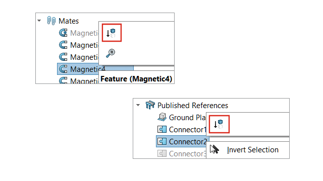 Bir bileşeni pasifleştirdiğinizde, bileşenle ilişkili manyetik montaj ilişkileri pasifleştirilir. Bir manyetik montaj ilişkisi oluşturduğunuzda pasifleştirilmiş bağlantı noktaları kullanılamaz.