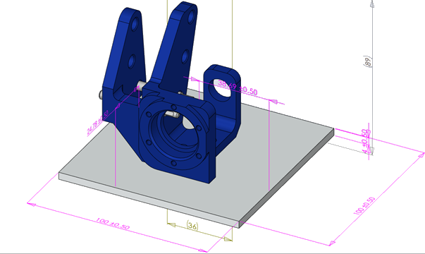 Unsur ölçümlendirmeleri, referans ölçümlendirmeleri ve DimXpert detaylandırmaları dahil 3B PDF dosyalarındaki bileşen ölçümlendirmelerini görüntüleyebilirsiniz.
