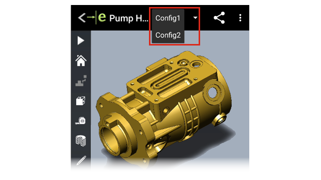 SOLIDWORKS parçalarının ve montajlarının konfigürasyonlarını, modelleri iOS™ için eDrawings'te ve Android™ için eDrawings'te açtığınızda kullanılabilir olacak şekilde belirleyebilirsiniz.