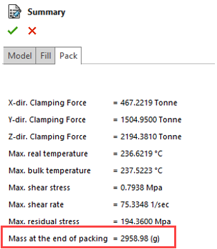 Her bir enjeksiyon birimi için aşağıdaki unsurları listeler: polimer malzeme ve malzemenin erime, kalıp, geçiş ve itiş sıcaklıkları.