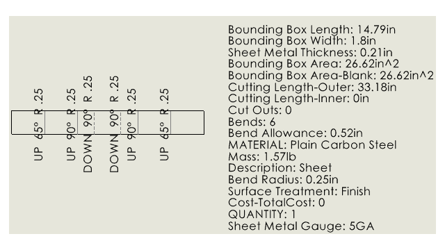 Sac levha parçalarının kalınlığını tanımlamak için ölçer tabloları kullanırsanız ölçer numarası Kesim Listesi Özellikleri iletişim kutusunda görünür. İlgili teknik resimde, ölçer değeri detaylandırmalar ve kesme listeleri için kullanılabilir.