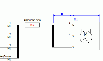 Özelleştirilebilir bir temel sembol (Kablo etiketi), klemens grubu teknik resmindeki kabloyu temsil eder.