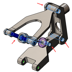 对于装配体的每个零件,算法都会检查全局 X、Y 和 Z 方向以及倾斜方向中是否存在自由平移和旋转。它还能够利用零件间的链(或合叶)机构检测装配体中的不稳定问题。在检测到自由实体模式的情况下,欠约束实体工具会相应地对其进行动画处理。