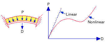 在非线性有限元素分析中,非线性的主要来源是由于结构的总体几何配置中大型位移的作用。承受大型位移作用的结构会由于载荷所引起的变形而在其几何体中发生重大变化,使结构以硬化和(或)软化方式作出非线性反应。