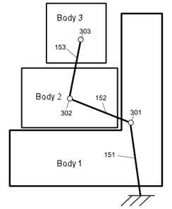 高级方法考虑源于实体之间交互的刚度。实体 1 和 2 接触,因此该方法考虑其参考点之间刚度的影响。该方法还考虑源自边界条件的刚度,例如,实体 1 和地面之间的刚度。 |