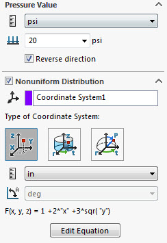 • 非均匀。定义非均匀压力分布的方程,包括长度单位