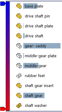 過濾清單 您可以依文字和依零組件的顯示/隱藏狀態來過濾「組合件視覺化」清單。 若要依文字過濾清單,請在組合件視覺化標籤 頂端的濾器欄位 中輸入文字。 只有名稱包含該文字的那些零組件會顯示在清單和圖面中。 未過濾 已過濾 在濾器欄位中按一下 來清除濾器。 要過濾掉狀態為隱藏的零組件,請按一下向下箭頭並按一下過濾隱藏的零組件。 處於隱藏狀態的零組件會從清單中消失。 因為這些零組件在圖面中已隱藏,因此圖面不會發生變化。 未過濾 已過濾 按一下向下箭頭並清除過濾隱藏的零組件以使隱藏的零組件返回到清單中。 上層主題操控清單的外觀 檢視平坦式或嵌套式清單 顯示值列 使用回溯控制棒隱藏零組件 變更精度 儲存為其他檔案類型