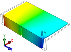 顯示零件脫出後冷卻至室溫時的凹陷分佈。 此結果中會包含所有熱效應及翹曲效應。 |