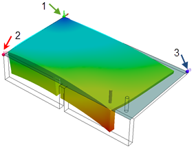 選擇定義參考基準面的三個節點。 變形零件會重新定位,但重新定位的方式會讓這三個節點留在其定義的參考基準面中。