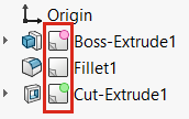 est créé dans l'arbre de création FeatureManager. Les commentaires s'affichent dans des info-bulles, à la fois dans le dossier Commentaires et sur l'élément concerné dans l'arbre de création FeatureManager.
