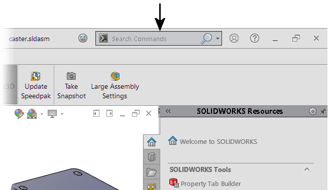 Vous pouvez utiliser la Recherche SOLIDWORKS pour trouver des informations dans la documentation. Vous pouvez également rechercher des fichiers et des modèles, ou rechercher et exécuter une commande SOLIDWORKS en appuyant simplement sur quelques touches du clavier.