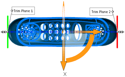 Définissez l'angle de dépouille en déplaçant les plans d'ajustement ou le trièdre. Pour ajuster la dépouille, placez le pointeur sur une arête du plan d'ajustement afin d'afficher le pointeur , puis faites glisser le plan.