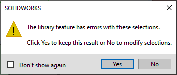 Lorsque vous insérez une fonction de bibliothèque, l'historique de toutes les fonctions insérées est inclus. Toutes les références qui peuvent être résolues en interne pour la fonction de bibliothèque ne s'affichent pas comme des références externes que vous devez sélectionner. Vous devez sélectionner toutes les références externes restantes à partir des entités dans la pièce cible.