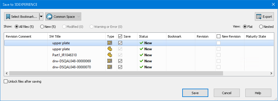 Si vous cliquez sur Enregistrer tout sur 3DEXPERIENCE, la boîte de dialogue Enregistrer sur 3DEXPERIENCE s'ouvre, vous permettant de spécifier les options d'enregistrement.