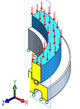 Usare l'opzione assialsimmetria quando la geometria, le proprietà del materiale, i carichi, i vincoli e le condizioni di contatto hanno una simmetria rotatoria intorno ad un asse. Si può modellare qualsiasi sezione trasversale intorno all'asse di rivoluzione. Se si utilizzano corpi multipli, devono essere simmetrici intorno allo stesso asse.