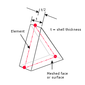 Il programma crea automaticamente una mesh di shell per le lamiere metalliche con spessore uniforme (tranne che nello studio del test di caduta). Per le lamiere metalliche la mesh viene automaticamente creata sulla superficie intermedia. Il programma estrae lo spessore dello shell dallo spessore della lamiera metallica.