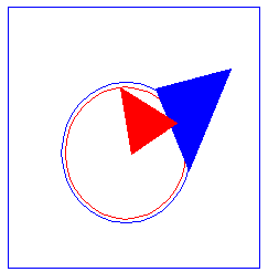 La seguente è una vista in sezione di due cilindri con un gioco molto piccolo tra loro: uno interno rosso e uno esterno blu. L'elemento mesh rosso del disco interno interferisce con l'elemento mesh blu del disco esterno. In questo caso è possibile selezionare l'opzione Ignora i giochi nei contatti tra superfici per evitare l'interferenza tra i due elementi mesh.
