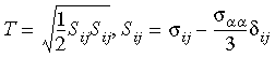 L'intensità di sollecitazione al taglio è definita dalla radice quadrata della seconda invariabile della deviante di sollecitazione e può essere espressa come: