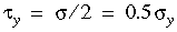 Utilizzando le condizioni Tresca, la sollecitazione al taglio nel punto di snervamento è pari alla metà della sollecitazione di snervamento di trazione: