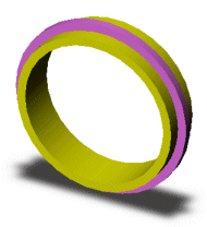 Considerare la giunzione dell'anello nella Fig. (1) all'interno nella Fig. (2). L'anello interno (figura 1) ha un diametro esterno di 18,2 cm ed è fatto di un materiale elastico. L'anello esterno (figura 2) ha un diametro interno di 18 cm ed è fatto di un materiale rigido. Per giungere l'anello interno all'anello esterno (Fig. 3), assegnare uno spostamento radiale sulla faccia esterna dell'anello interno selezionata di -0,1 cm rispetto all'asse di riferimento.
