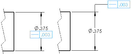 - Si possono posizionare simboli di tolleranze di forma, con o senza linee di associazione, in un punto qualsiasi in un disegno, parte, assieme o schizzo e le si possono attaccare ovunque su una linea di quota.