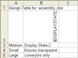設計テーブルで表示状態をコントロールするには、表示状態をコンフィギュレーションに関連付ける必要があります。
