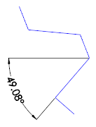 5. 모서리와 선분 사이의 각도 치수 미리보기가 나타납니다. 클릭하여 치수를 부가합니다. 예: