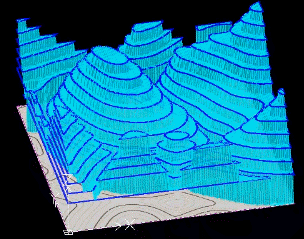 Po zakończeniu śledzenia wszystkich linii i przypisanych poziomów można wygenerować trójwymiarową rzeźbę krajobrazu w postaci siatki wieloboku, powierzchni lub bryły.
