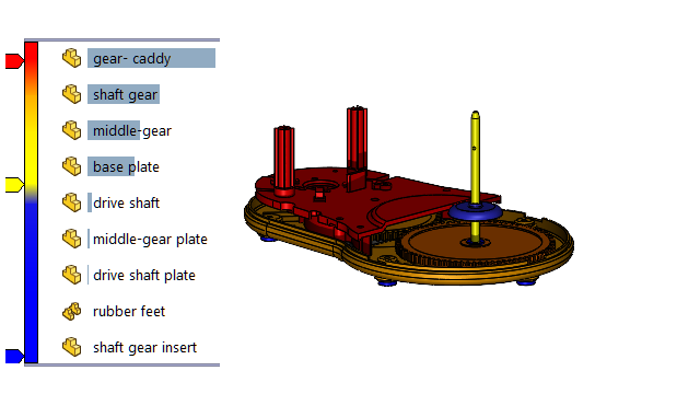 Visualização de montagem oferece diversas maneiras de exibir e classificar os componentes de uma montagem em uma lista e na área de gráficos.