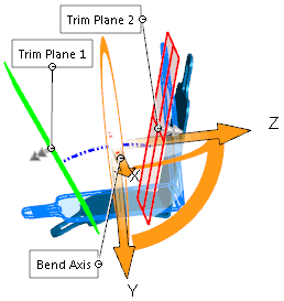 Defina o afunilamento movendo os planos de aparagem ou a tríade. Para ajustar o afunilamento, movimente o ponteiro sobre a aresta de um plano de aparagem para exibir o ponteiro e, em seguida, arraste o plano.