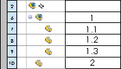 Você pode remover componentes-pai individuais na hierarquia recuada de uma BOM enquanto retém os componentes-filho através da dissolução de itens da BOM. Clique com o botão direito nas células da coluna Estrutura da Montagem da BOM para dissolver submontagens ou soldagens, removendo-as da exibição da BOM.