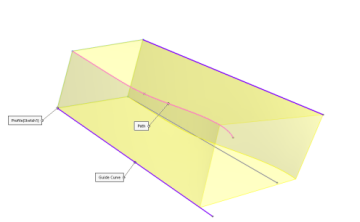 Exemplo de Seguir caminho e Seguir Primeira e segunda curvas-guia (duas curvas-guia selecionadas) |