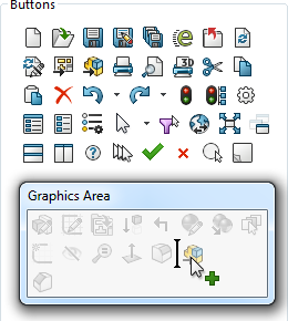 - Para acessar os botões recém-adicionados, clique em um recurso no local - área de gráficos ou árvore de projeto do FeatureManager - onde você iniciou a personalização.