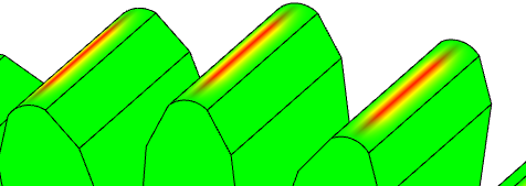 Neste exemplo, a engrenagem contém dois corpos sólidos. Para um dos corpos, as bordas dos dentes da engrenagem são filetadas. Para o outro corpo, as bordas não são filetadas.